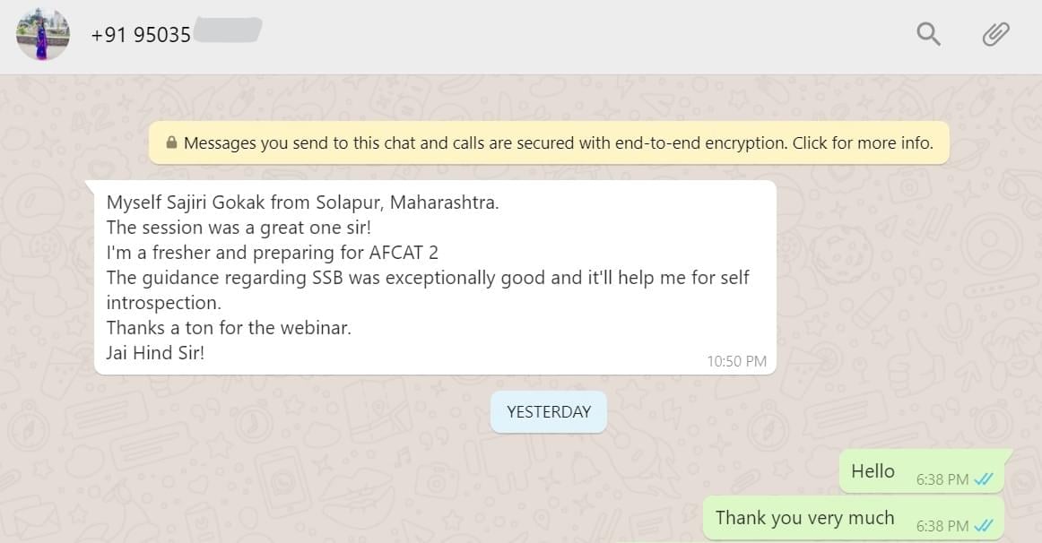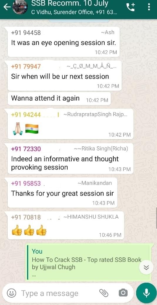 “The Ujjwal Chugh Sir session is very knowledgeable, helpful and very energatic session. The book is wonderful and his sessions actually focuses on strategies to enhance your personality for SSB”.