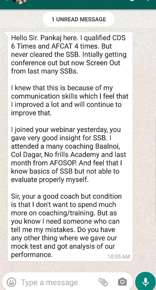 I commit myself to your success & SSB Recommendation. The only thing that is required from your side is the honesty, dedication & commitment to invoke the 'Non-Uniform' officer in your daily life and undying passion to get into Indian Armed Forces.